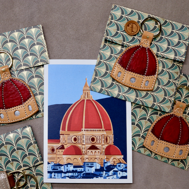 The key chain comes in hand made packaging with a beautiful card illustrated by a florentine artist.
